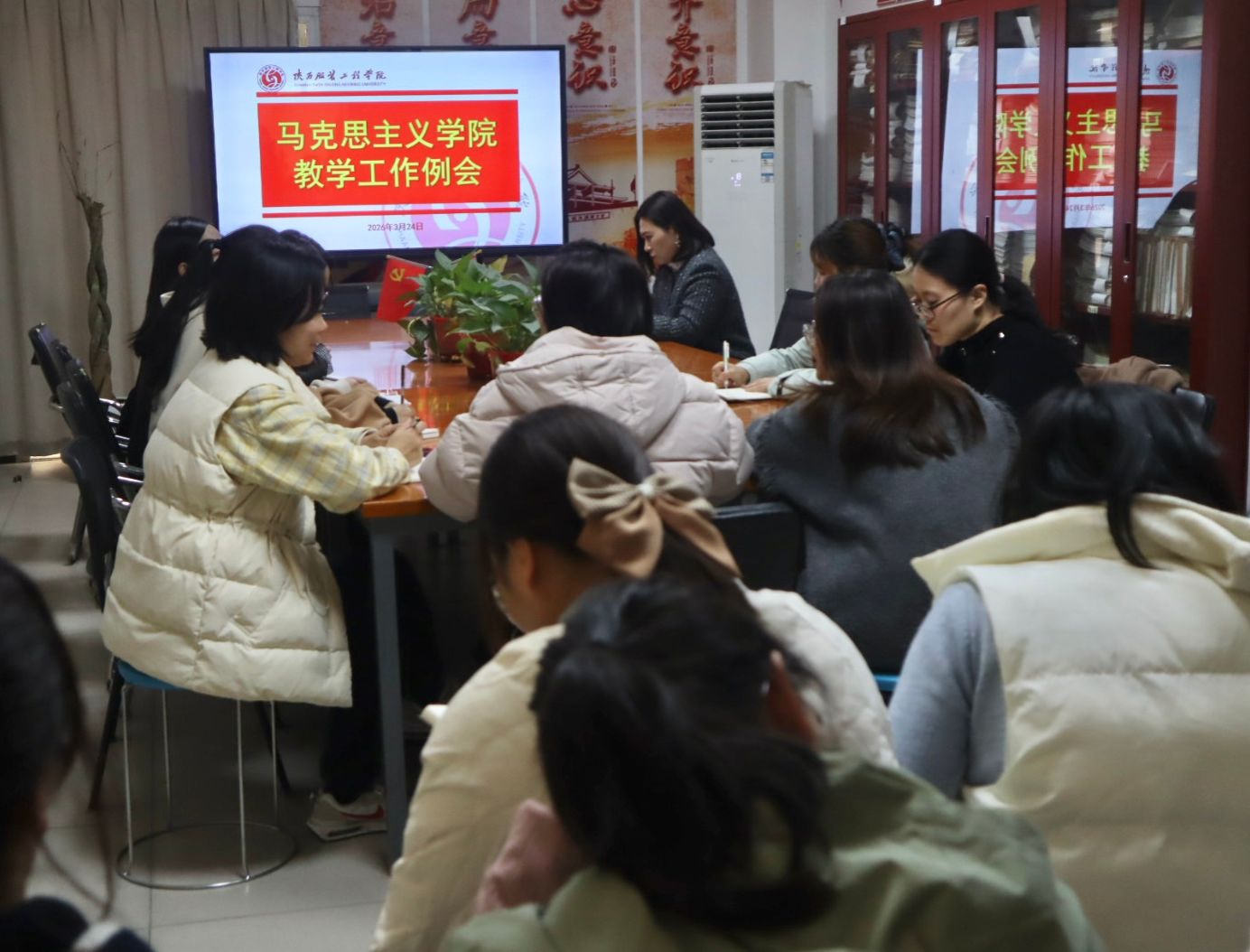 (侯帆)为深入贯彻全国全省教育大会精神,紧扣学校2026年度办学治校与人才培养核心任务,扎实推进学院思政教育教学工作提质增效,2026年3月24日下午,马克思主义学院在D101会议室召开教学工作例会,会议由副院长朱旭主持,重点传达了学院2026年度工作要点,对全年教学核心工作进行部署和安排。会上,朱旭副院长围绕思政课教学改革、“延安行”大思政课实践活动、思政金课建设等重点工作任务进行安排。她强调如下几点:一是深化思政课教学改革,...