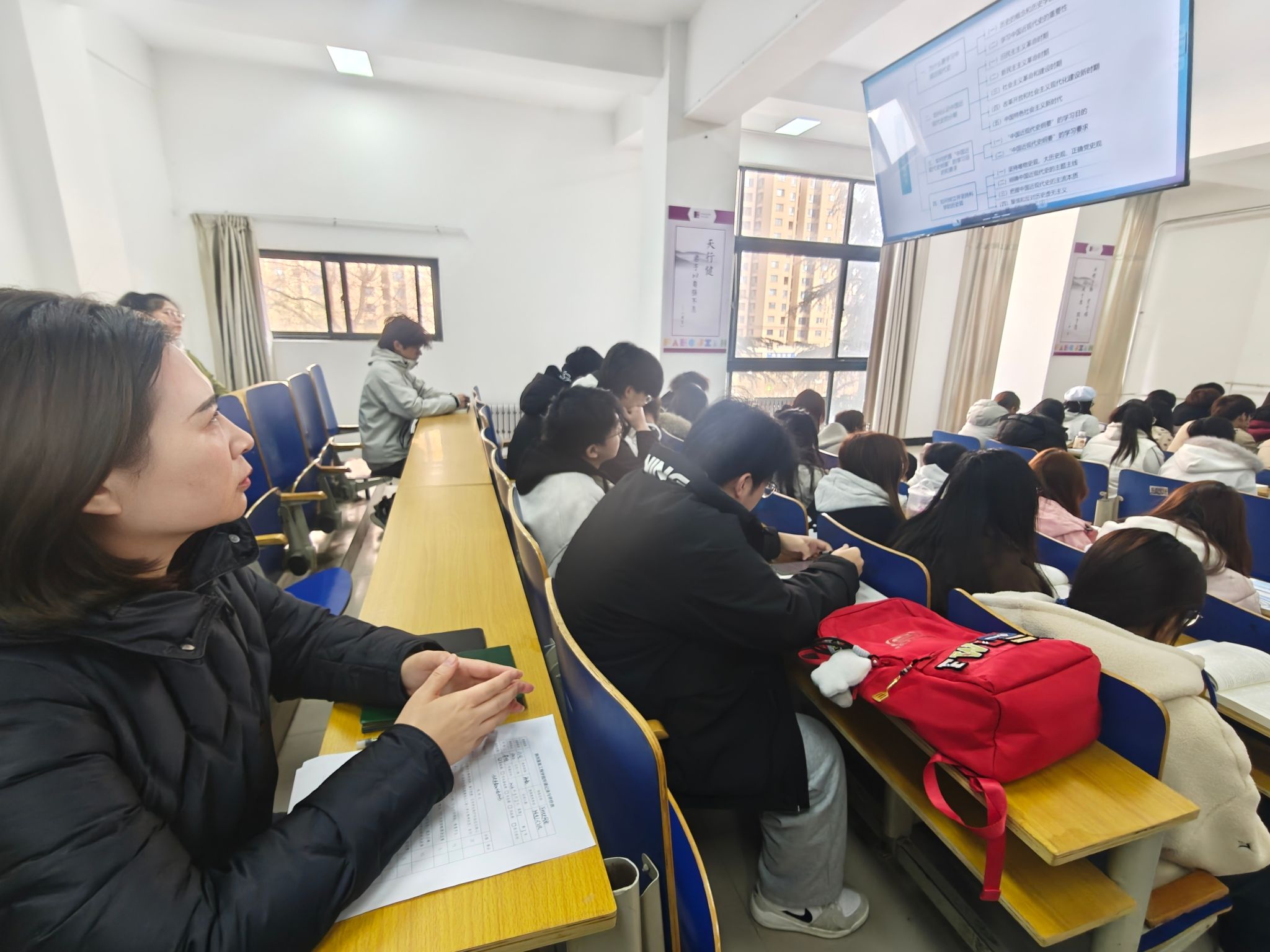 (侯帆)为深入贯彻落实立德树人根本任务,扎实推进思想政治理论课改革创新,全面掌握新学期教学运行状态,2025-2026学年第二学期开学伊始,马克思主义学院副院长朱旭带领教研室主任深入教学一线,开展开学第一课集中听课活动,重点听取《毛泽东思想和中国特色社会主义理论体系概论》《中国近现代史纲要》等核心思政课程,以实地听课、现场观摩、课后交流的方式,把脉课堂教学、指导育人实践。听课过程中,院领导与教研室主任认真聆听授课内容,...