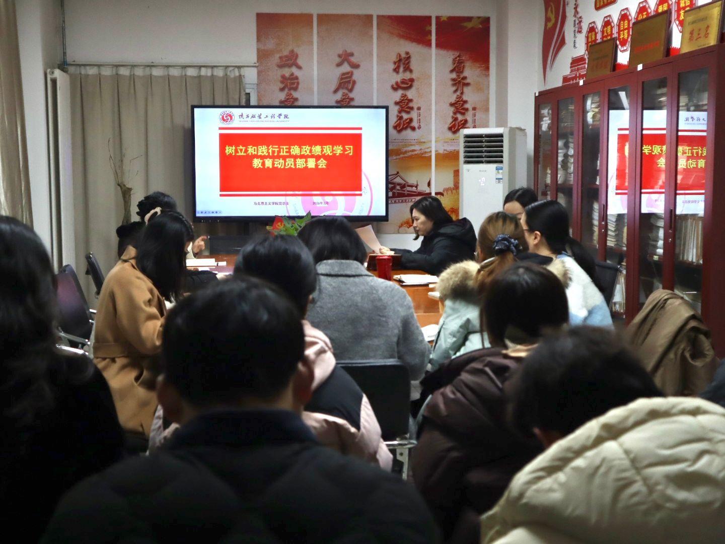 (侯帆)3月17日上午,马克思主义学院党总支在D101会议室召开树立和践行正确政绩观学习教育部署会,马克思主义学院全体教师按时参会。会上,马克思主义学院党总支书记朱旭向我院教师传达了中央、省委及学校有关文件和会议精神,对学院开展树立和践行正确政绩观学习教育学习教育活动进行动员部署。朱旭书记强调,本次会议既是一次动员部署会,也是一次思想淬炼会,并对我院教师提出三点要求:一要提高政治站位,深刻认识正确政绩观对思政课教师立德树人、...