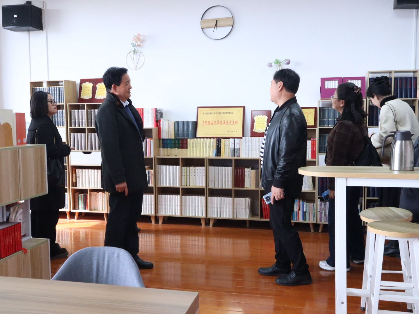 座谈结束后,在陕西理工大学马克思主义学院相关负责人的陪同下,陕服交流团先后实地参观了学院教学技能训练室、教学训练录播室、数智能力提升室、思政课教学创新研讨室,现场观摩学院在教学硬件设施建设、教学教研平台打造、思政课教学创新支撑等方面的具体举措,详细了解各功能室的建设理念、运行模式和使用成效,为自身教学教研平台建设积累了实用经验。
